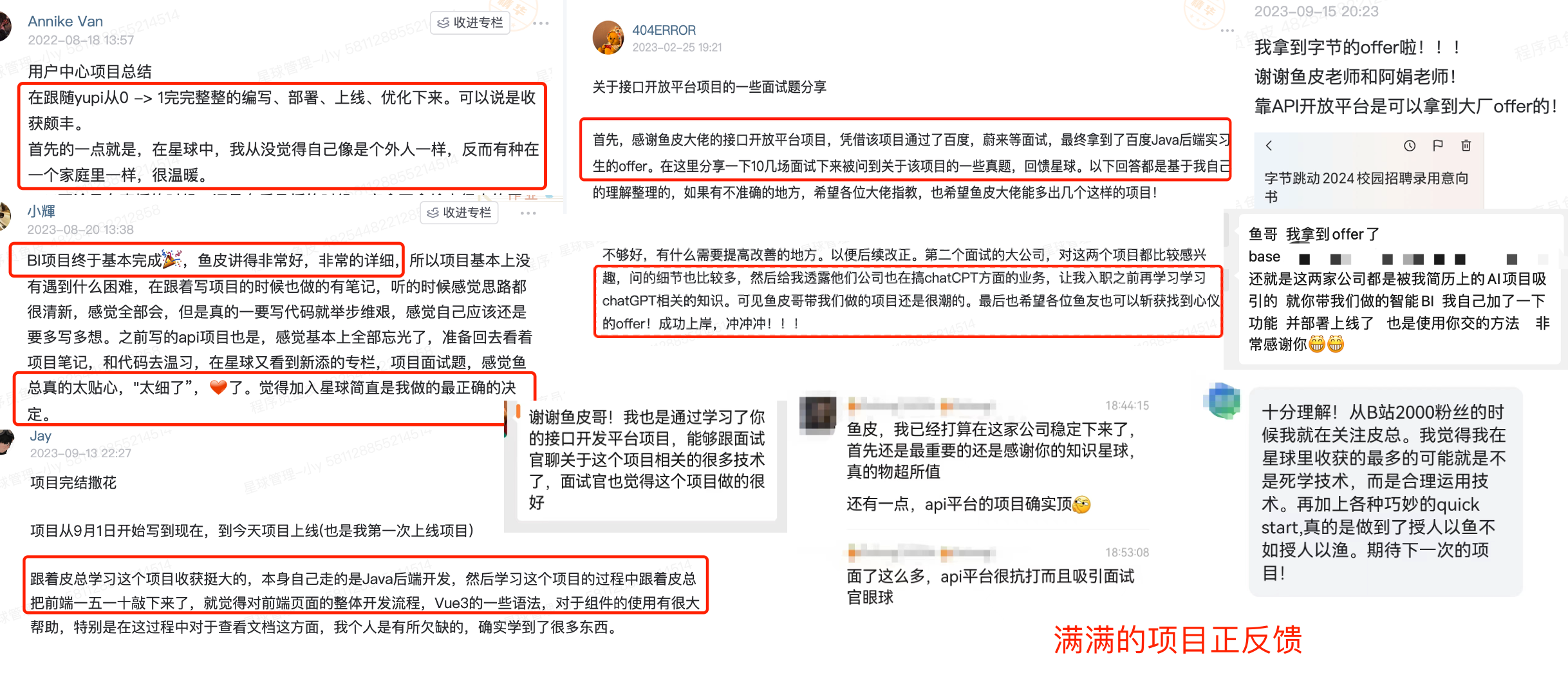 比起看网上的教程学习,鱼皮项目系列的优势如下: